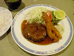 ハンバーグと海老フライ定食
