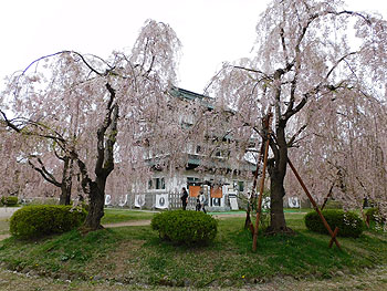 『弘前文化センター』の前に立つ