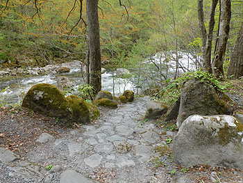 奥入瀬渓流を眺めながら