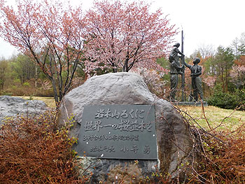 「世界一の桜並木」の碑 |