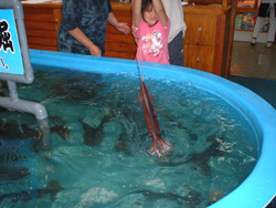 | 寿都に入ってから海に下りて30分ほどカニと戯れ、PM4:00過ぎに寿都の寿旅館に入りました。私の部屋は西日のガンガン入る部屋で何をしても暑く、ただただ動かずにジッとしておりましたぁ。PM5:00過ぎからお風呂に入りPM6:30に夕食。またまた大量のお食事をお腹いっぱいにいただき、ふぅ・・・。(8/14の日記より) |