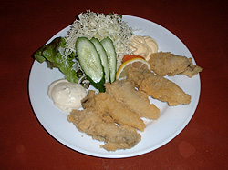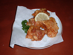 上のお刺身と左の鶏半身で